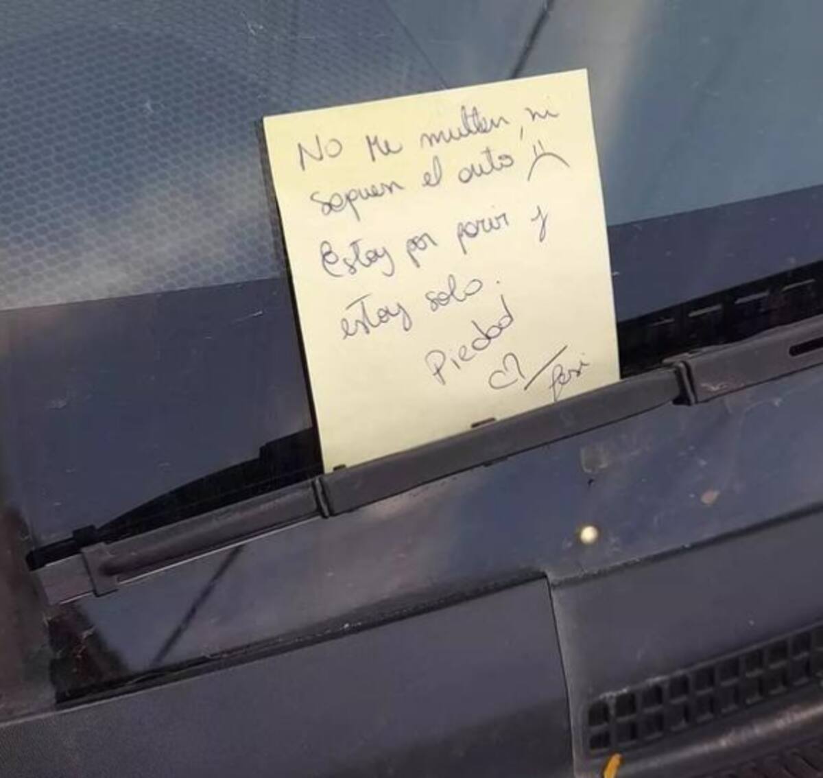 “No me multen ni saquen el auto. Estoy por parir y estoy sola. Piedad”, decía el mensaje escrito en una pequeña hoja de papel amarilla.