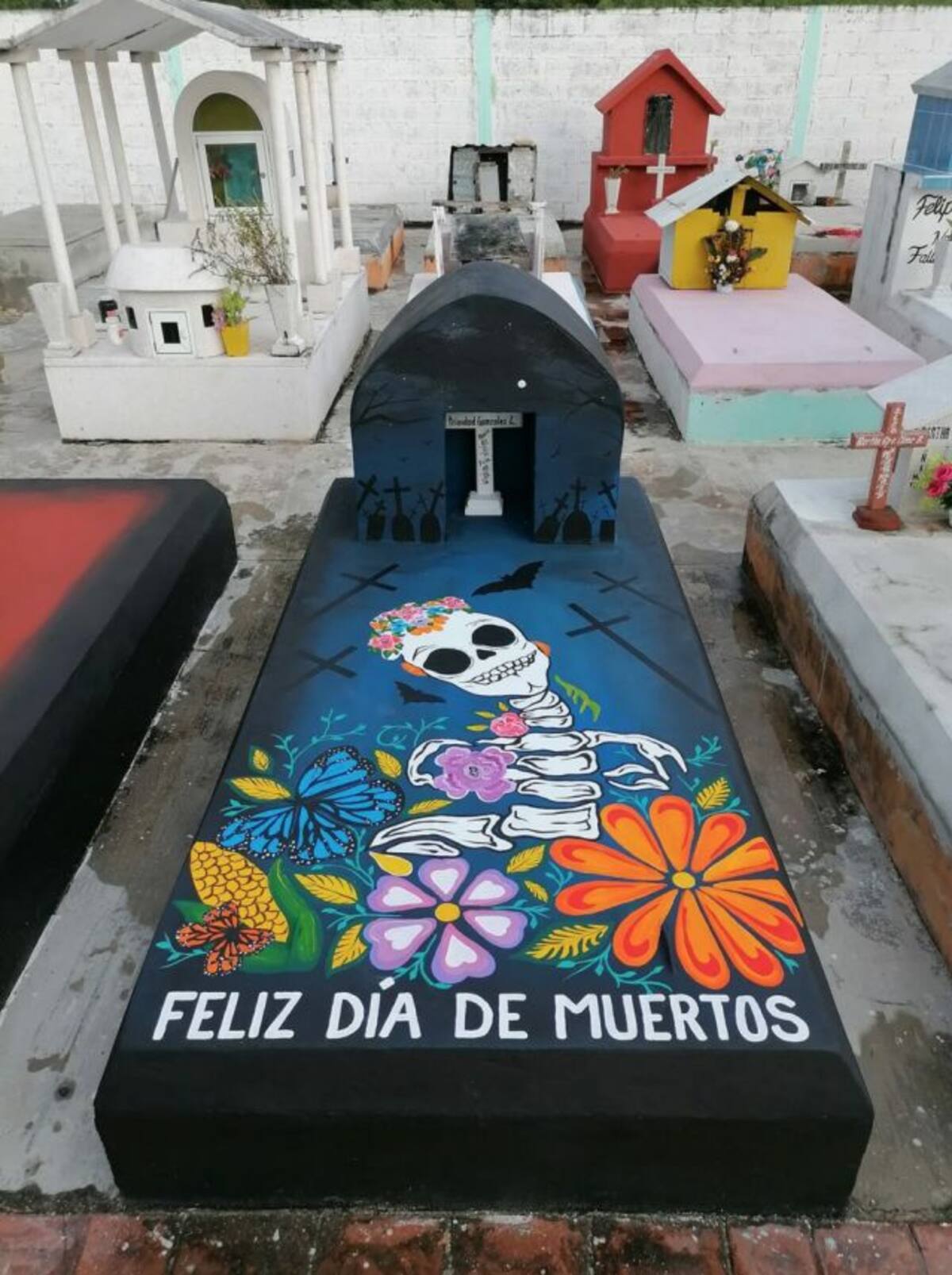 Un joven originario de Yucatán llamó la atención de todos al crear una colorida y hermosa pintura sobre la tumba de su abuelita.