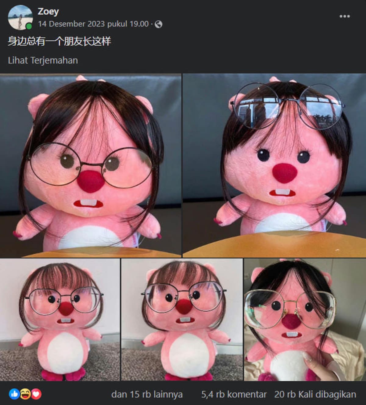 Pelucha rosa con lentes se hace viral
