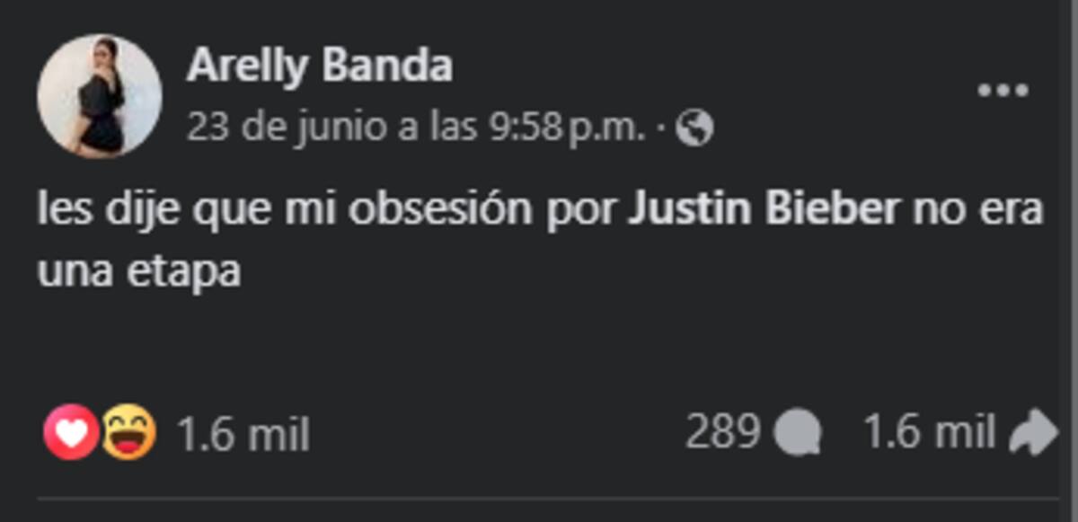 En el reconocimiento se lee: “A mis padres y a Justin Bieber”, lo que inmediatamente llamó la atención de los usuarios. Arelly acompañó la imagen con el texto: “Les dije que mi obsesión por Justin Bieber no era una etapa”, dejando claro que su admiración por el cantante ha sido una constante en su vida.