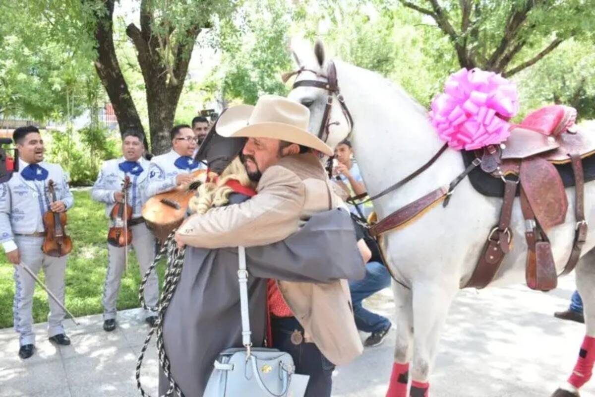 El padre de Estefanía, don José Ávila Lozano, organizó una ceremonia especial para entregarle a su hija el caballo ‘El Gavilán’. La sorpresa comenzó con un joven que le llevó flores, evocando al famoso personaje de “El Patrón”, seguido por la aparición de un mariachi que llenó el ambiente con música festiva. Poco después, el hermoso caballo, adornado incluso con un moño en su lomo, hizo su entrada triunfal.