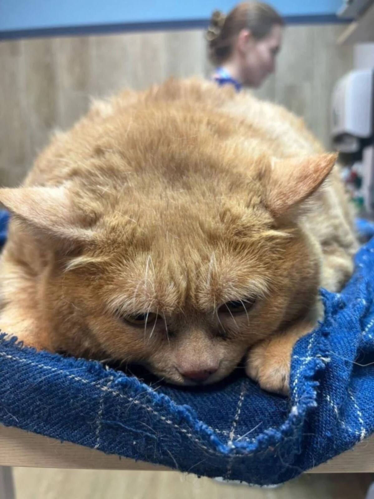 Gato obeso queda atascado durante su fallido intento de escape de la clínica de adelgazamiento