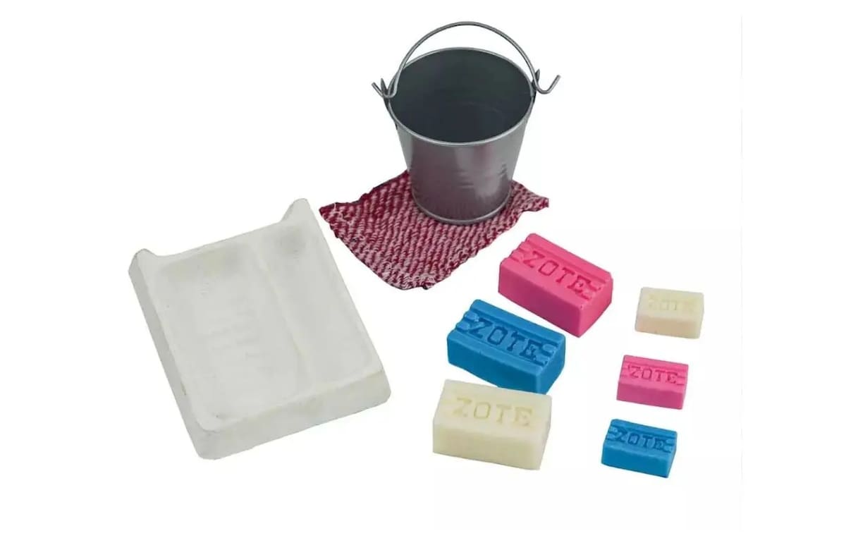 La unión entre La Corona, fabricante del Jabón Zote, y Mi Alegría, ha dado como resultado un set que permite fabricar réplicas miniatura de este famoso jabón, un producto que ha estado en los hogares mexicanos desde 1970. Originalmente, Zote se creó como una opción más económica para lavar a mano, y su uso ha pasado de generación en generación.