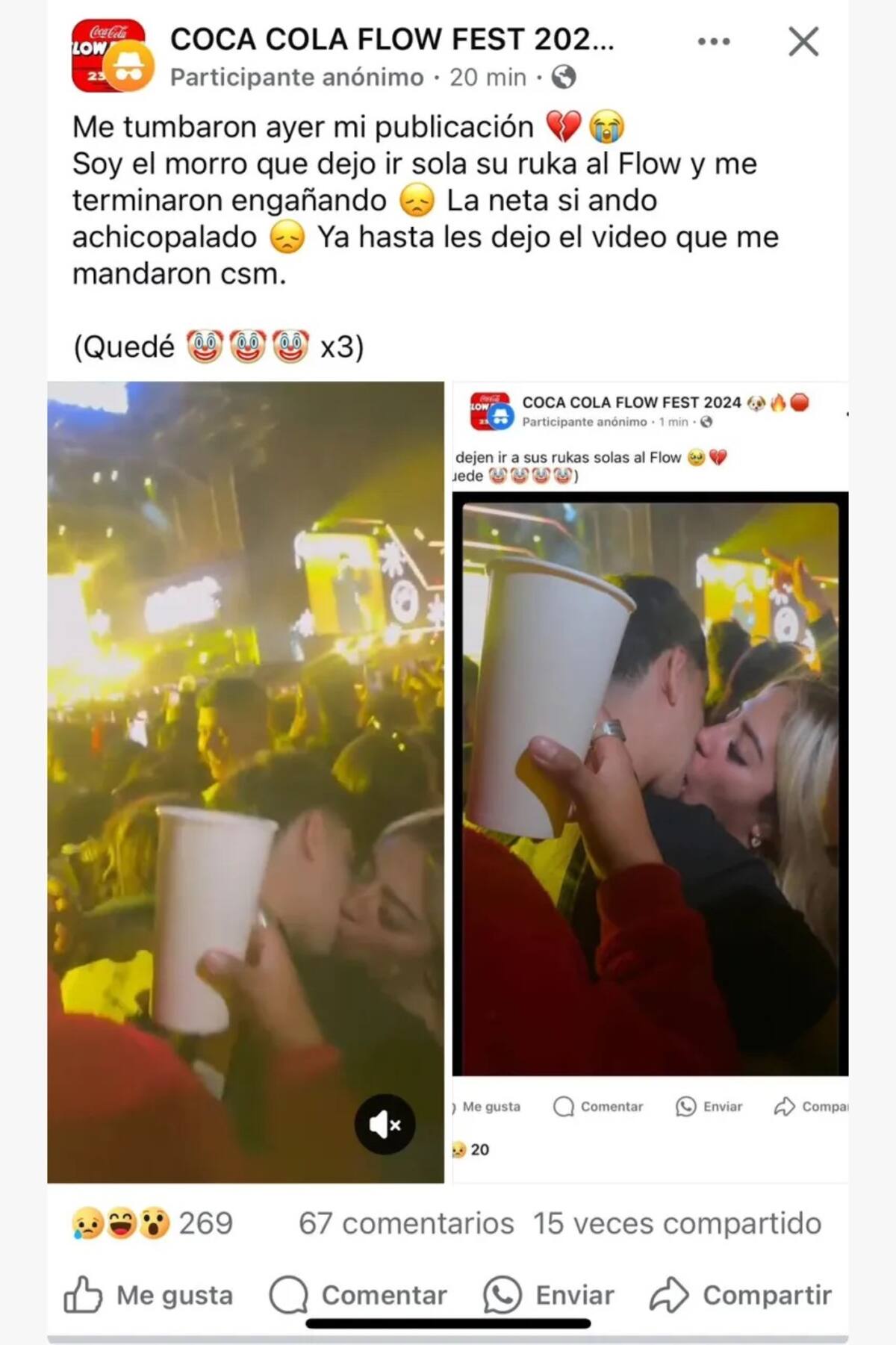 El joven compartió su experiencia en un grupo de Facebook, donde confesó sentirse “achicopalado” tras recibir un video en el que se ve a su pareja besándose con otra persona durante uno de los conciertos del festival.