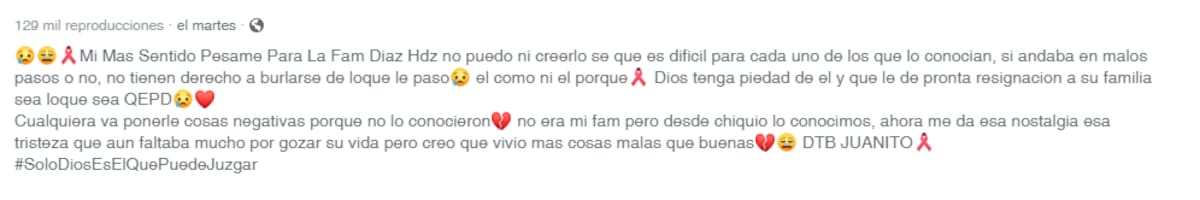 En la publicación de Facebook se puede leer que si andaba en malos pasos o no, no es motivo para burlarse de lo que le ocurrió al menor.