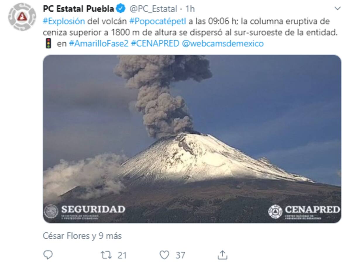 El Centro Nacional de Prevención de Desastres (Cenapred) dio a conocer que la explosión fue de baja intensidad y se detectó a las 9:06 horas.