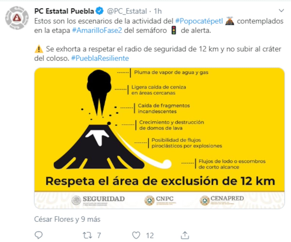 Ante la posible caída de ceniza, se recomienda cubrir nariz y boca con pañuelo o cubreboca, limpiar ojos y garganta con agua pura, utilizar lentes de armazón y evitar los de contacto, cerrar ventanas y cubrirlas, y permanecer el mayor tiempo posible dentro de casa.