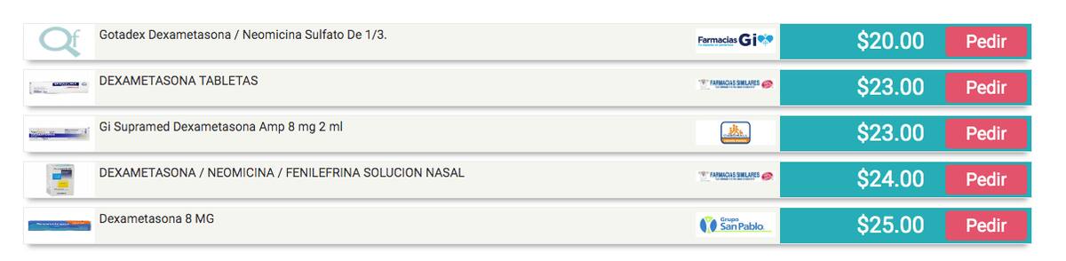 Según reporta la pagina de Internet quefarmacia.com, el precio va desde los 11 hasta los 25 pesos, siendo el más barato el que lo vende Farmacias Similares y el más caro Grupo San Pablo.