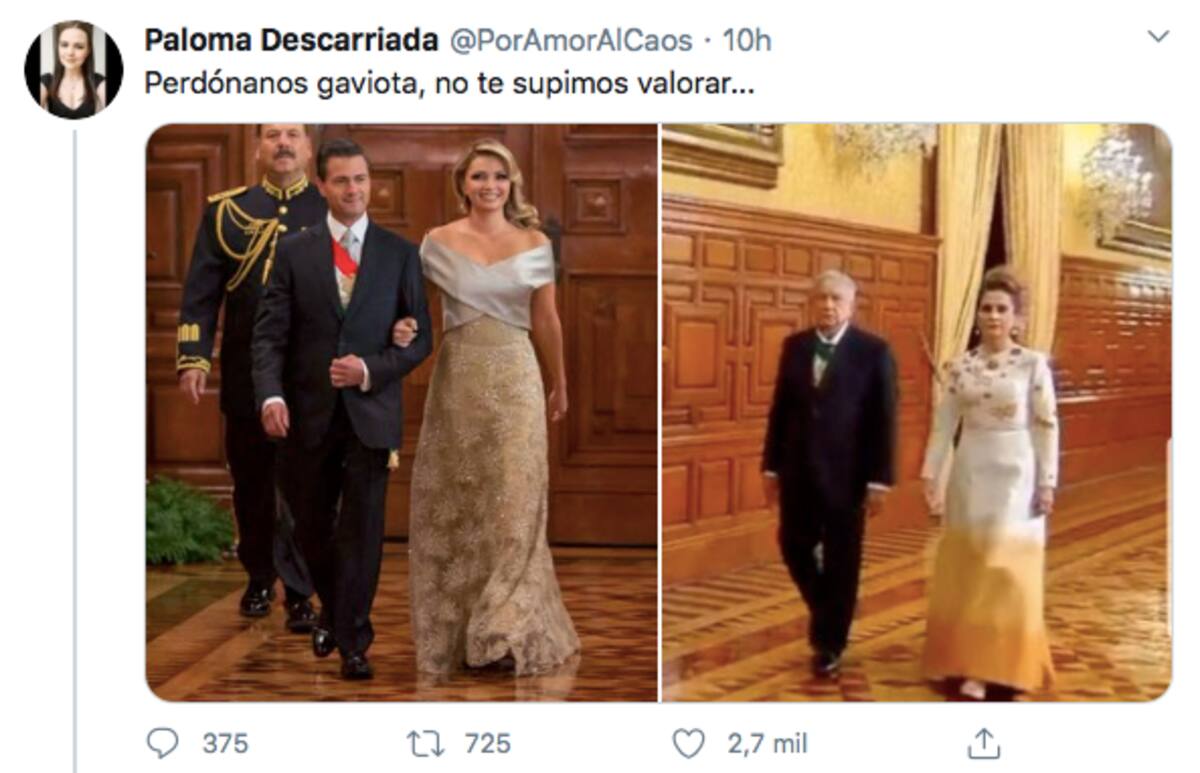 También se comparó a Beatriz Gutiérrez con la ex primera dama Angélica Rivera, para lo que compartieron la imagen de Angélica en la ceremonia del Grito de Independencia de 2015.