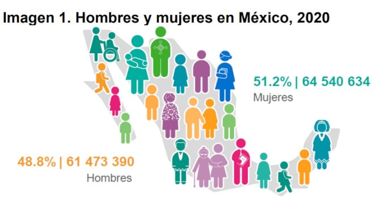 En México viven 64 millones 540 mil 634 mujeres y 61 millones 473 mil 390 hombres.