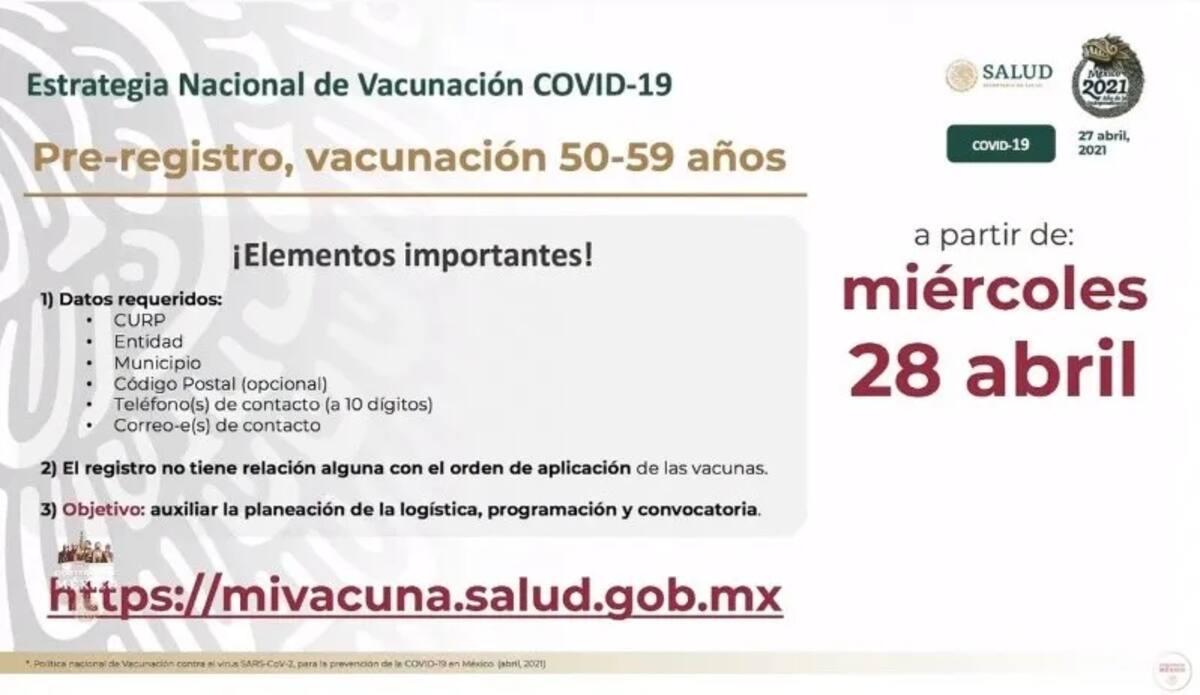CIUDAD DE MÉXICO.- La Secretaría de Salud habilitó en el portal mivacuna.gob.mx el registro de personas de entre 40 y 49 años a partir de este jueves 27 de mayo. El gobierno planea iniciar la aplicación en este sector de la población a principios de junio.