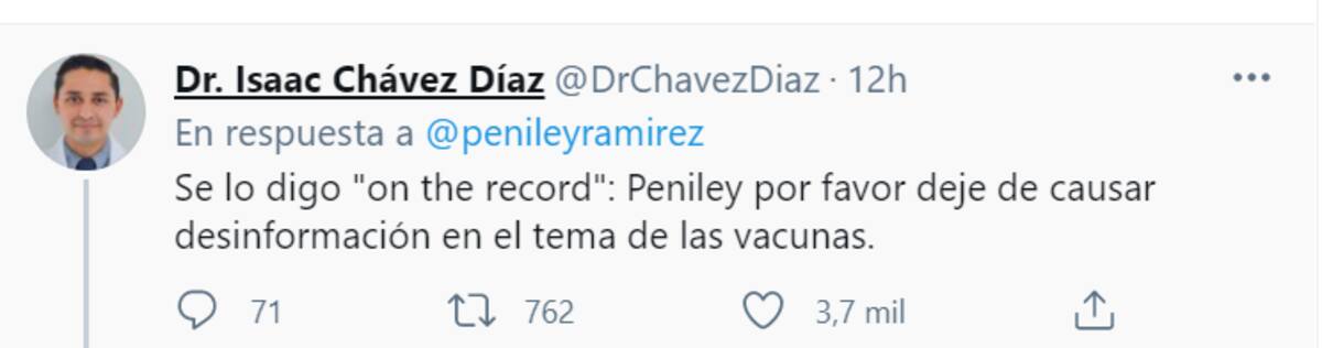 Ante esta solicitud, el doctor Isaac Chávez Díaz le dijo: "Se lo digo "on the record": Peniley por favor deje de causar desinformación en el tema de las vacunas".