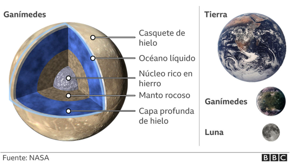 Para tener una referencia, con sus 5.268 km de diámetro, Ganímedes es más grande que Mercurio.