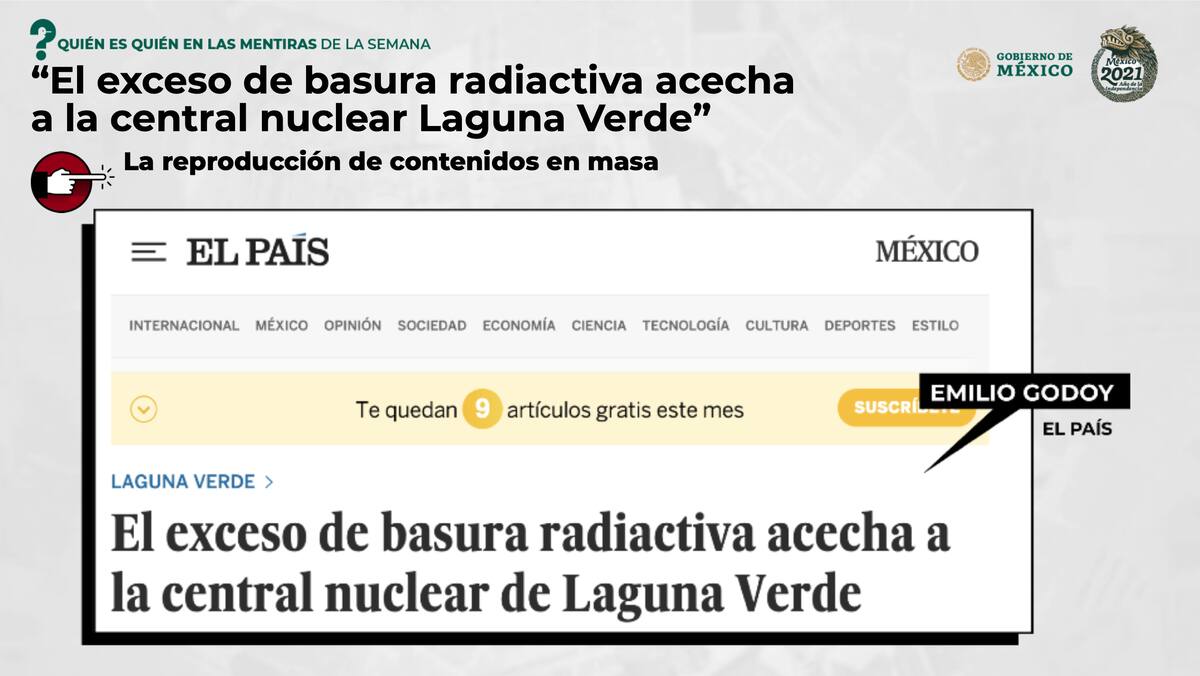 Además se exhibió una nota del diario El País: “El exceso de Basura Radiactiva acecha a la central nuclear de Laguna Verde”