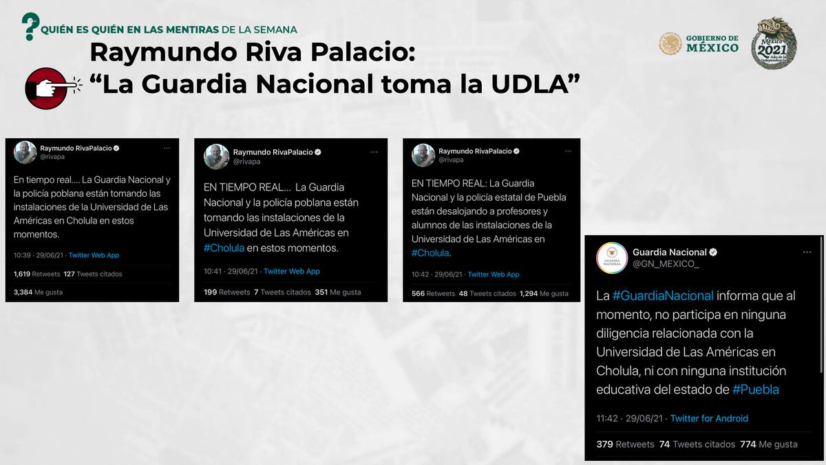 También fue exhibido Raymundo Riva Palacio con: “La Guardia Nacional toma la UDLA”.
