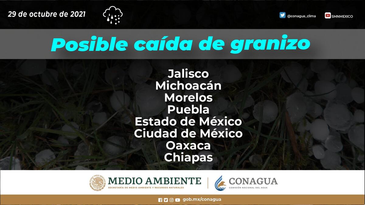 Además, las lluvias podrían acompañarse de caída de granizo.