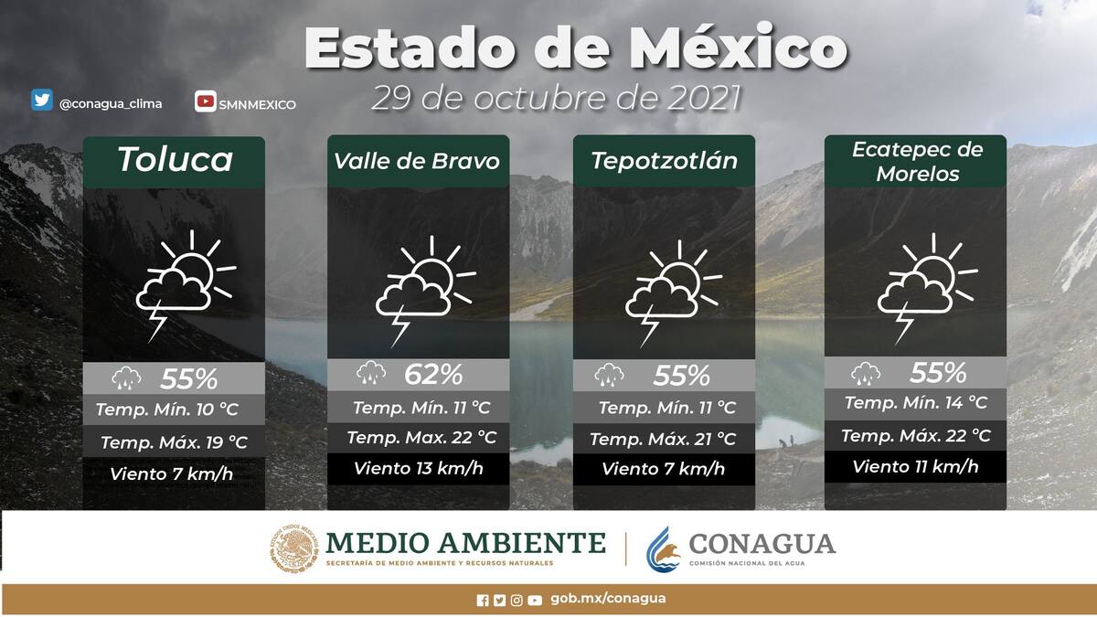 Así las condiciones del tiempo para los municipios de Toluca, Valle de Bravo, Tepotzotlán y Ecatepec de Morelos, en EdoMéx.
