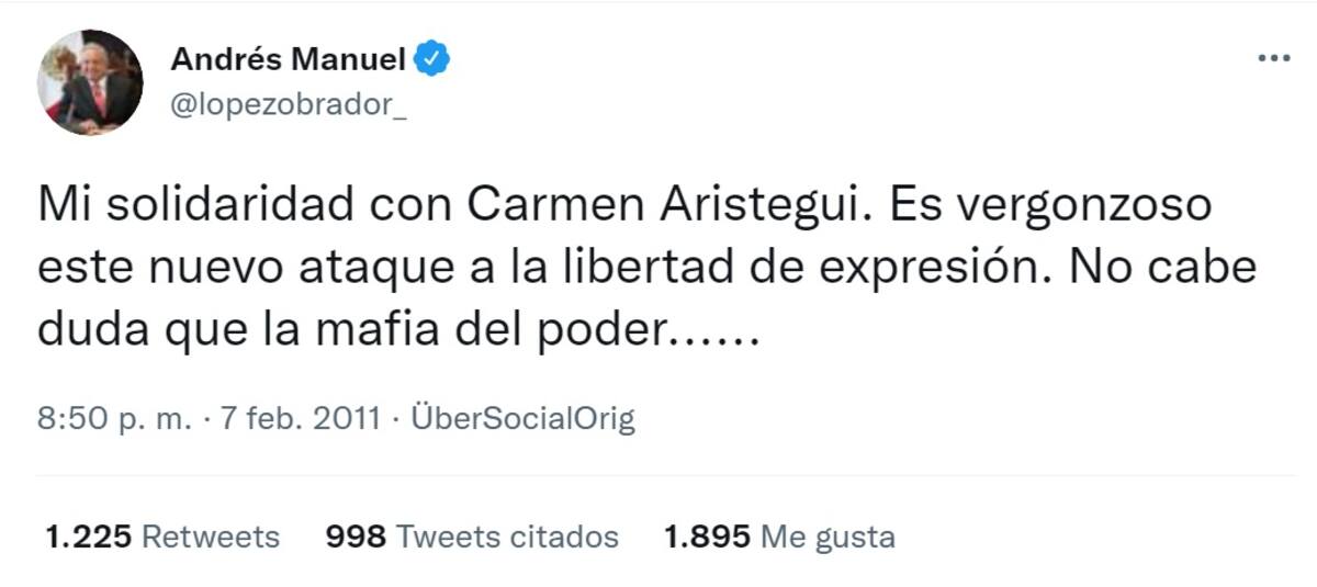 En redes sociales se difundió un tuit publicado por AMLO en donde se solidarizaba con la periodista y calificaba como "vergonzoso" el ataque a la libertad de expresión que sufrió en febrero de 2011.