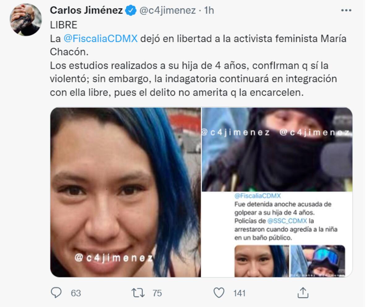 CIUDAD DE MÉXICO.-Las autoridades de la Ciudad de México han dejado libre a María Karime, una activista feminista que golpeó salvajemente a su niña de 4 años.