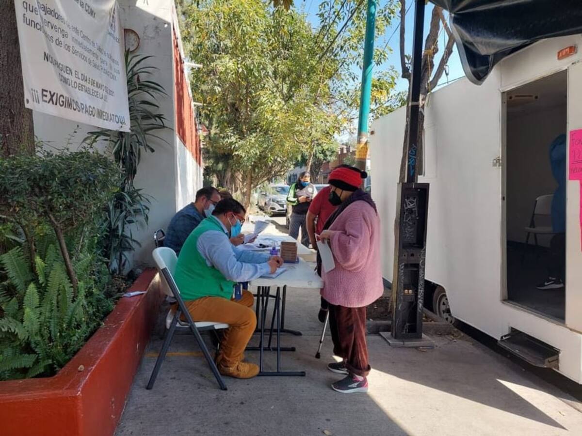 María señaló que llegó desde muy temprano a formarse al Kiosco Covid-19, en el Centro de Salud Dr. José Castro Villagrana en la calle Carrasco esquina Coapa S/N colonia Torello en la alcaldía Tlalpan para que le tocara la ficha 143. Sin síntoma alguno, pero preocupada porque pudiera contagiar a su mamá mayor de edad, nos contó que el día 1 de enero, llegó a su casa una visita con Coronavirus para el recalentado.