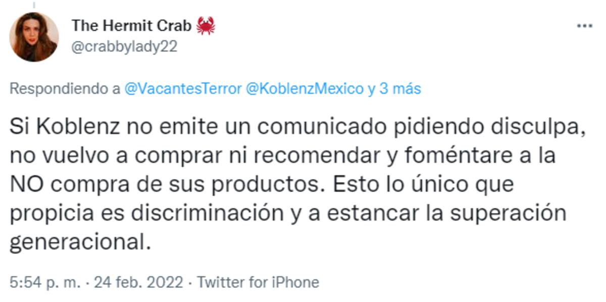 Por su parte, los usuarios de Twitter fueron tajantes en dejar en claro que dejarían de comprar los productos de la empresa del primer caso, si esta no ofrecía una disculpa.