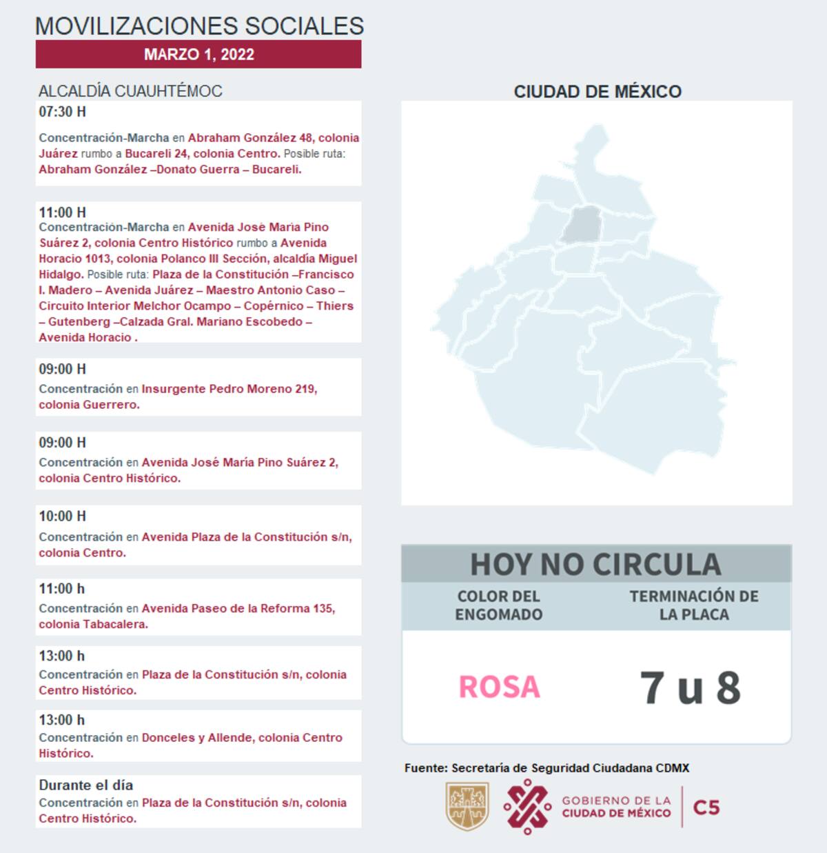 Movilizaciones, marchas y protestas para la CDMX este martes 1 de marzo