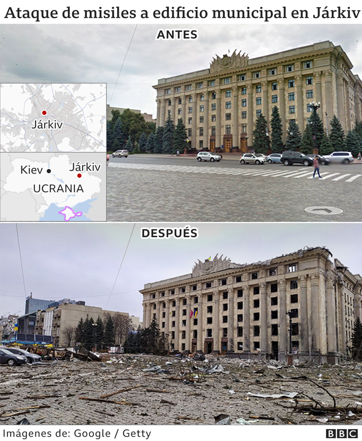Járkiv, la segunda ciudad más grande de Ucrania, ha sido el foco de intensos bombardeos aéreos por parte de las tropas rusas durante varios días. El centro de la ciudad ha resultado gravemente dañado.