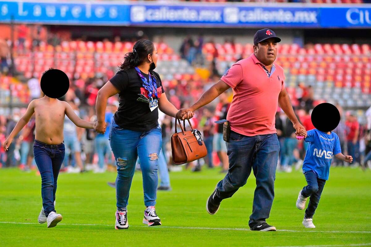 En medio de los actos de violencia extrema que se presentaron en el estadio de Querétaro FC cuando el partido estaba en el segundo tiempo, se hicieron virales en redes sociales varias imágenes de aficionados protegiendo a sus familias, pues el lugar se convirtió prácticamente en "zona de guerra".