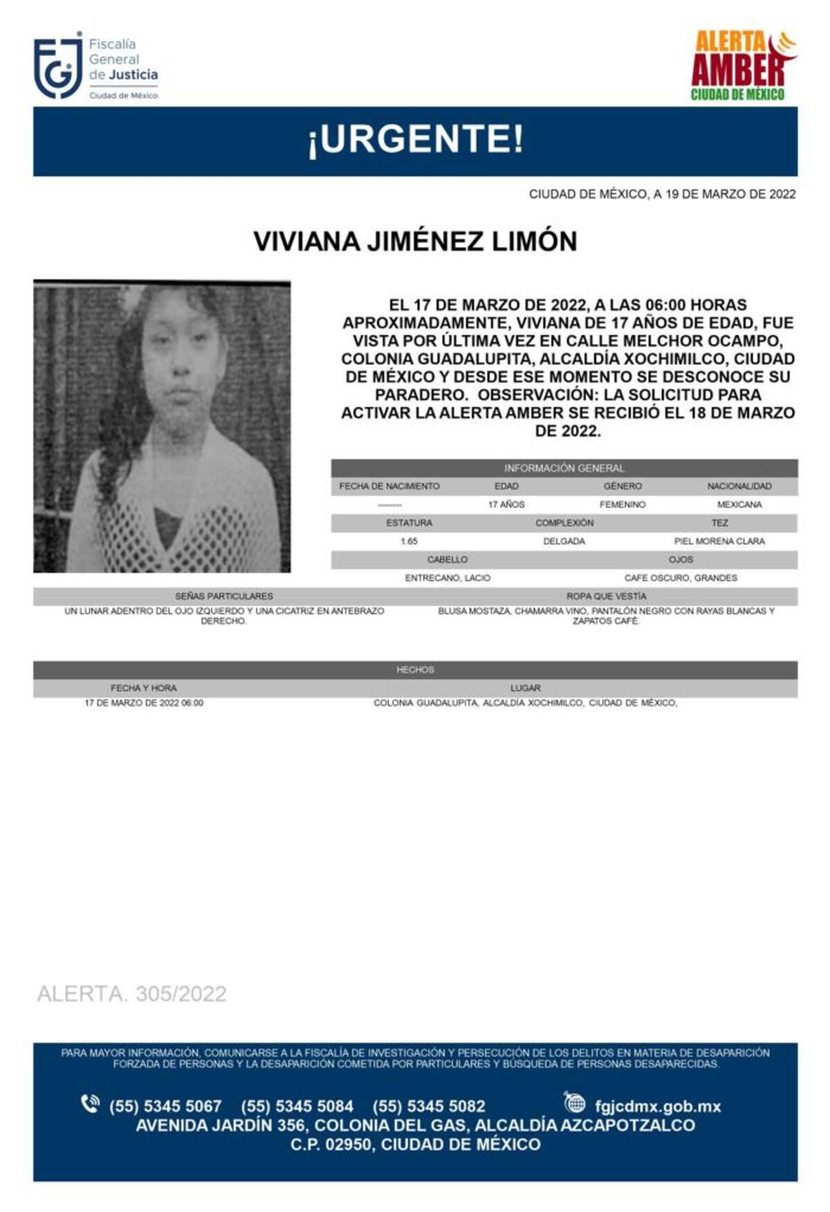 Como señas particulares tiene un lunar adentro del ojo izquierdo y una cicatriz en el antebrazo derecho. Al momento de desaparecer vestía blusa mostaza, chamarra vino, pantalón negro con rayas blancas y zapatos café.