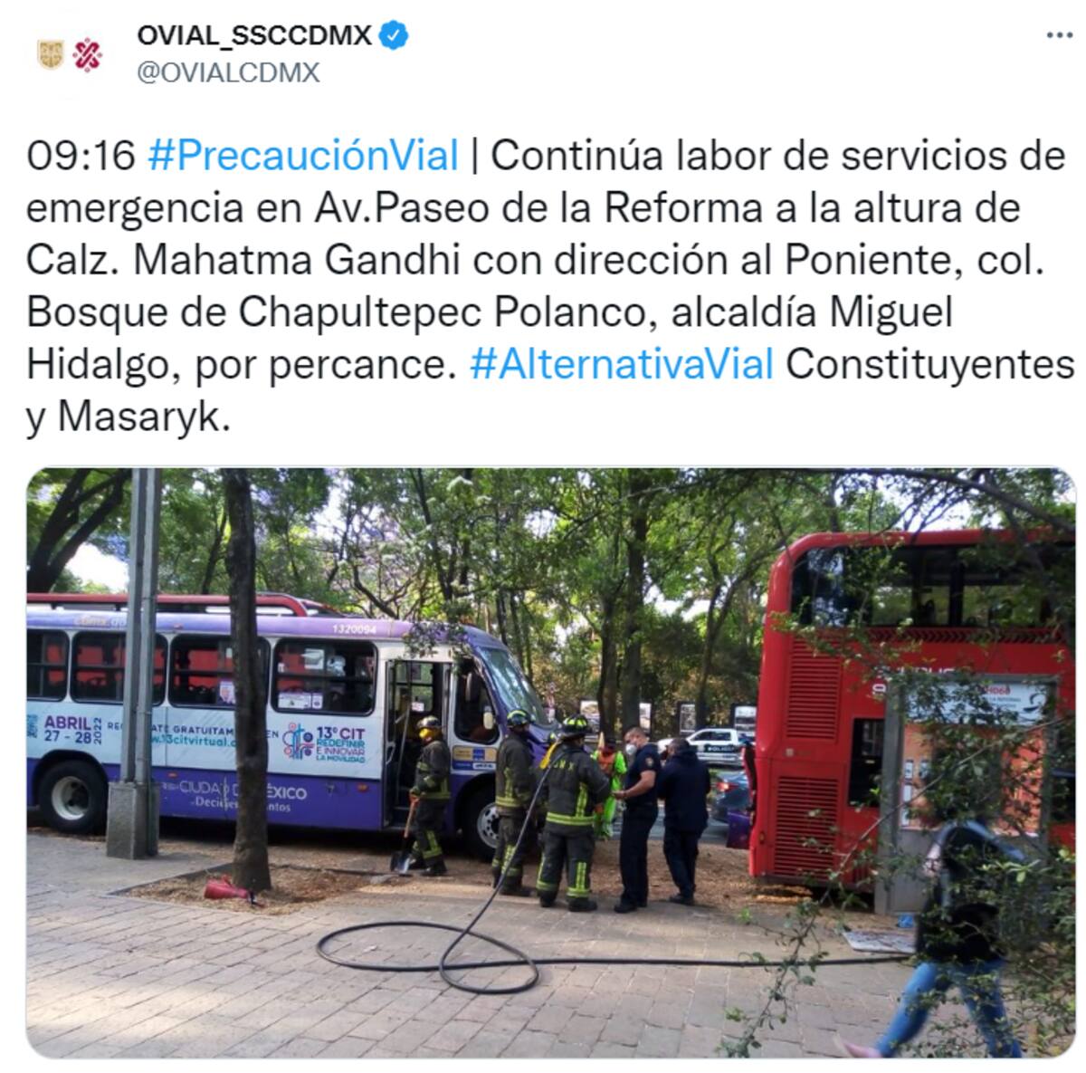 El percance ocurrió en Paseo de la Reforma entre una unidad del Metrobús de la Línea 7 y un autobús del corredor de transporte Atrolsa.