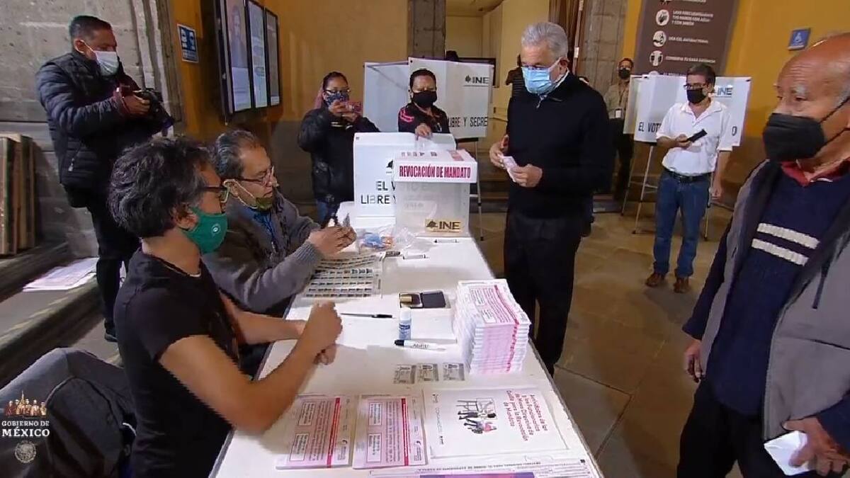 CIUDAD DE MÉXICO (GH).- El presidente Andrés Manuel López Obrador votó esta mañana en la casilla de la sección 4748 ubicada en la calle Moneda, frente a Palacio Nacional en la consulta de Revocación de Mandato.