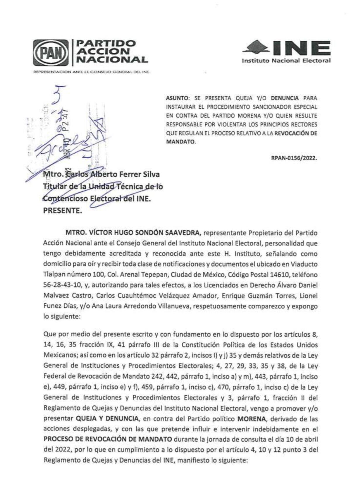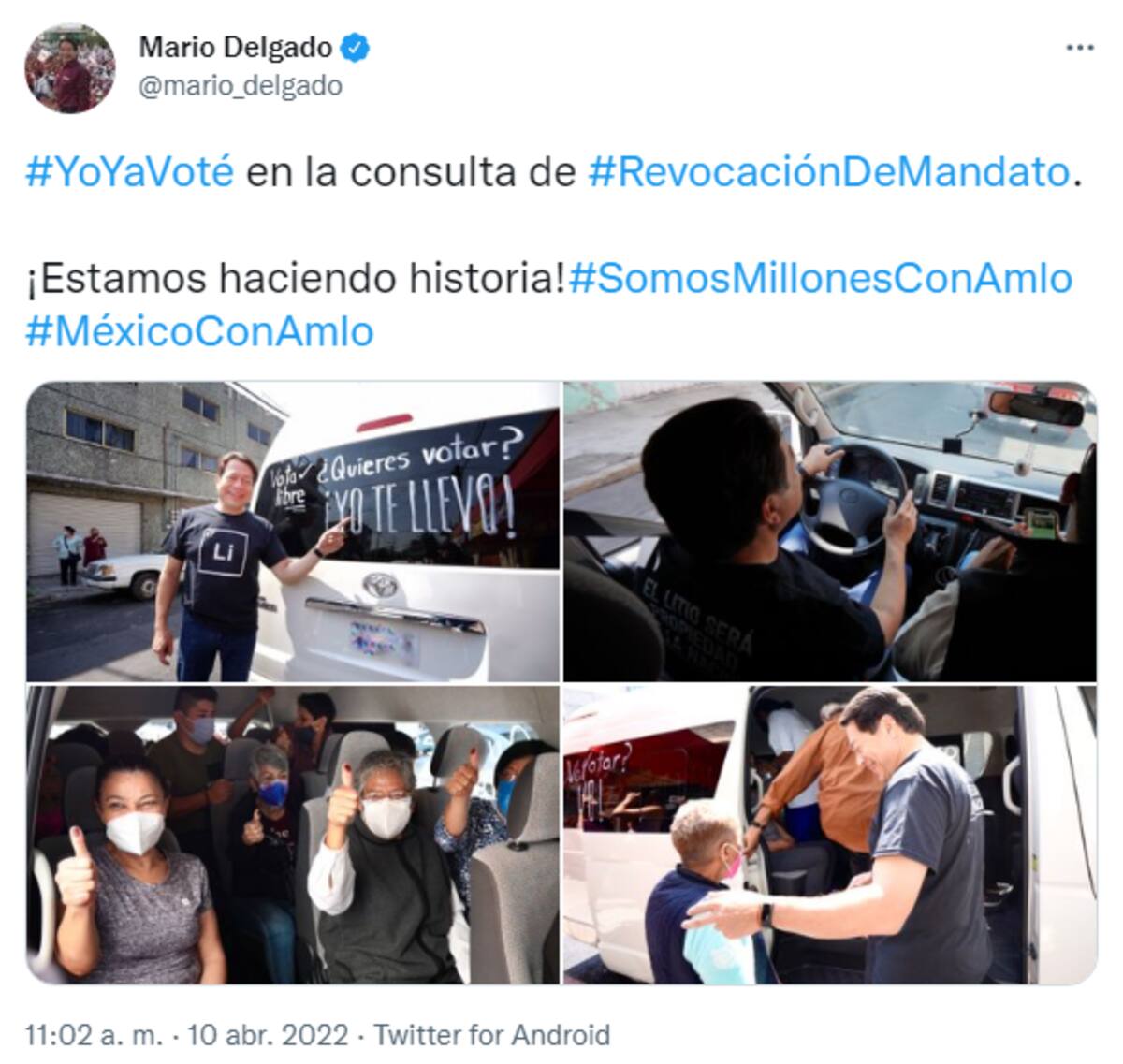 Por el ofrecimiento de la combi que Mario Delgado hizo para llevar a votantes, el Partido Acción Nacional (PAN) interpuso una denuncia formal en contra del presidente morenista ante la Unidad Técnica de lo Contencioso Electoral.