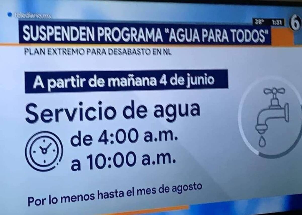 Sin embargo, hoy se dio a conocer que el plan "Agua Para Todos" será suspendido a partir de mañana sábado 4 de junio y por lo menos hasta el mes de agosto.