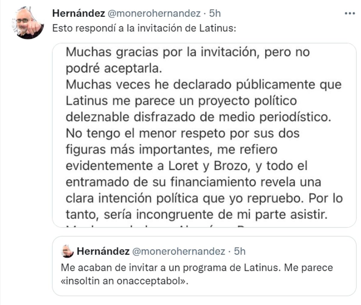 Monero rechaza ir a Latinus: "Me parece un proyecto político deleznable disfrazado de periodismo"