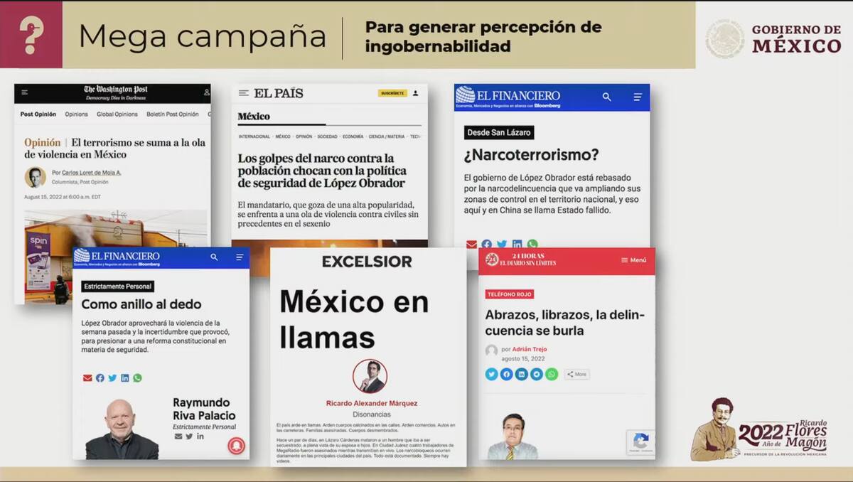 Elizabeth García Vilchis, lectora de la sección "quién es quién en las mentiras de la semana", de la conferencia mañanera del presidente Andrés Manuel López Obrador, acusó una "mega campaña" para generar percepción de violencia generalizada e ingobernabilidad en México.