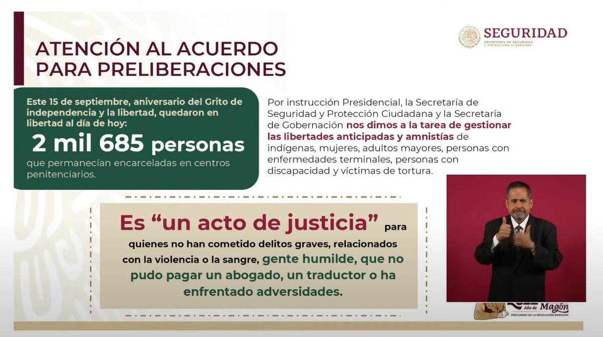 Aunado a ello, detallaron que son 2 mil 549 personas preliberadas que vivieron discriminación, enfrentaron la pobreza en sus comunidades y no tuvieron oportunidades de desarrollo o con contaron con la defensa adecuada, por lo que hoy en día puedes ser “partícipes de un acto de justicia del gobierno”.