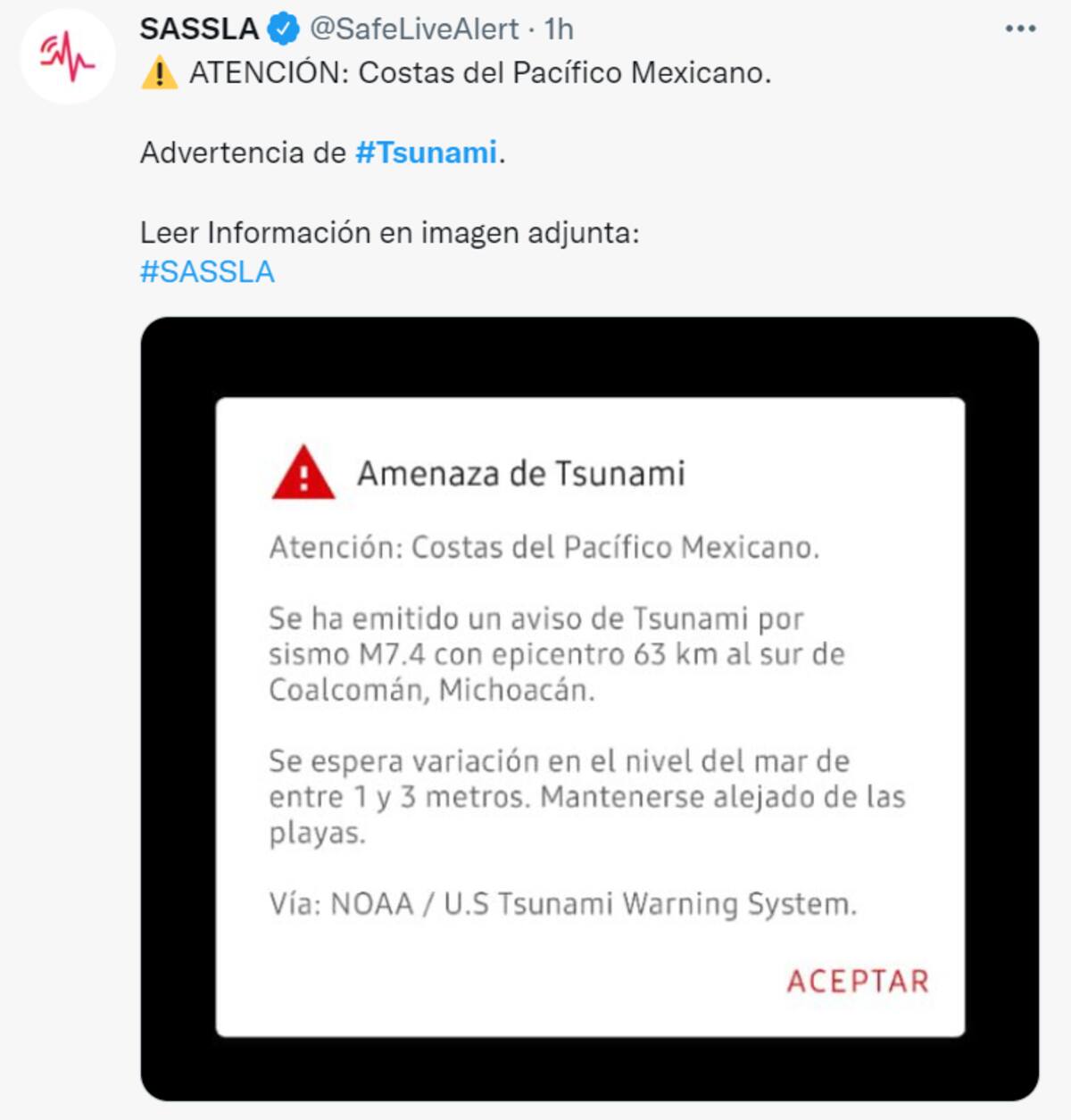 Las autoridades emitieron una alerta de tsunami y solicitaron a todas las personas alejarse de la playa para evitar algún accidente.