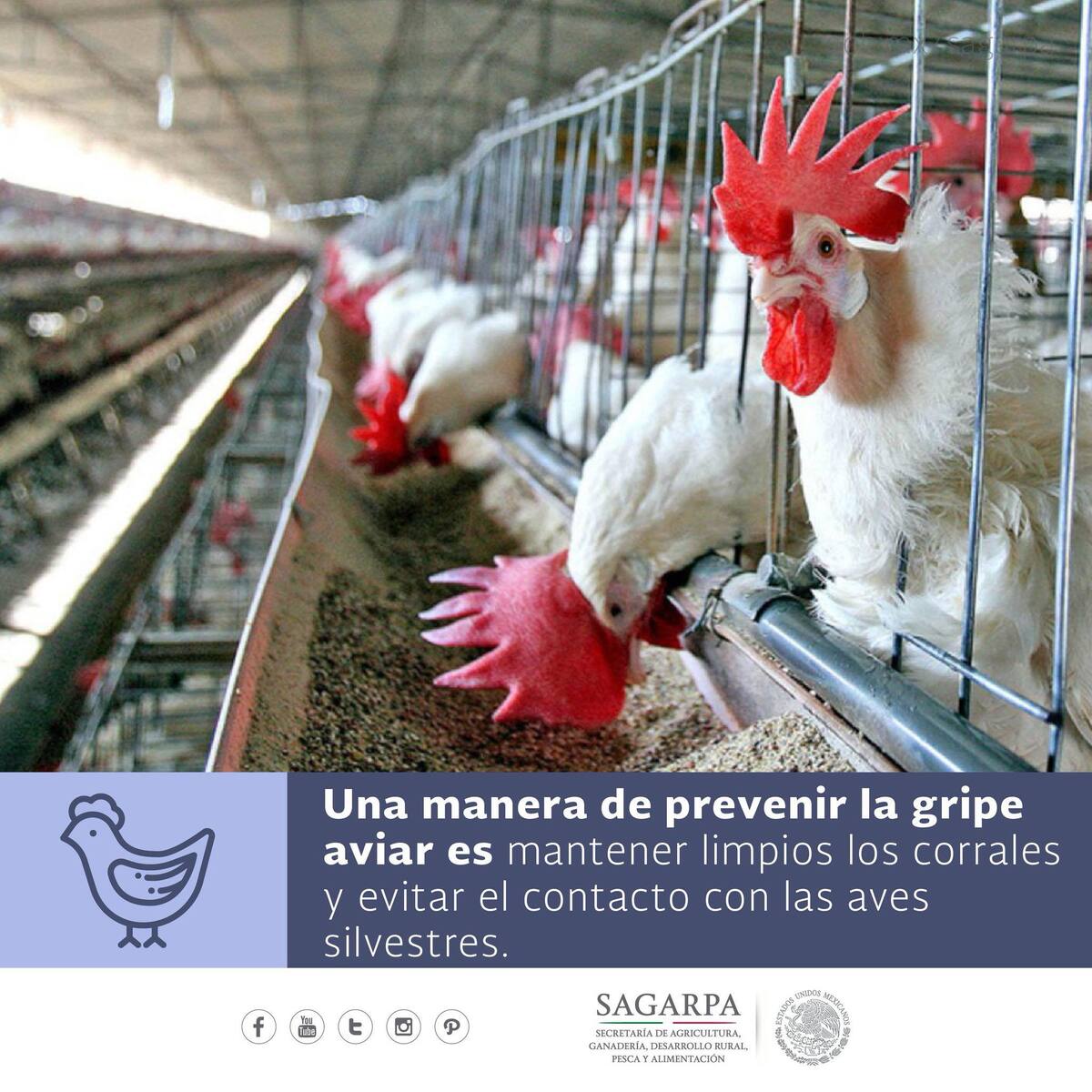 CIUDAD DE MÉXICO.- Con el objetivo de proteger la producción avícola de la influenza aviar de alta patogenicidad (IAAP) AH5N1 y avanzar en el control y erradicación de la IAAP H7N3 en todo el País, la Secretaría de Agricultura y Desarrollo Rural destacó las acciones de vigilancia epidemiológica en las 32 entidades y estableció nuevas medidas para garantizar que las unidades de producción cumplan con medidas mínimas de bioseguridad (MMB).