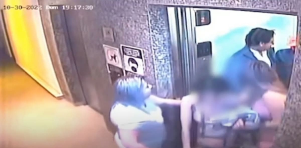 Casi 40 minutos después, se puede ver a Rautel "N" sacar a cargando en hombros el cuerpo sin vida de una mujer, fue a cámara del elevador la que captó el momento en que camina hacia un pasillo y baja por las escaleras de servicio.