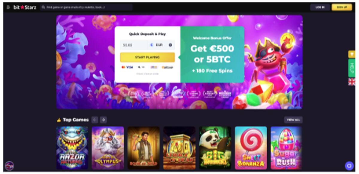 Registrarse y jugar en BitStarz es sencillo. El casino permite pagos con criptomonedas o monederos electrónicos, aunque también acepta tarjetas de débito (con una comisión del 2,5%). Los tiempos de procesamiento de los retiros varían según el método elegido: mientras que los retiros con criptomonedas y monederos electrónicos son prácticamente instantáneos, con tarjeta de débito o transferencia bancaria suelen demorarse un poco más.