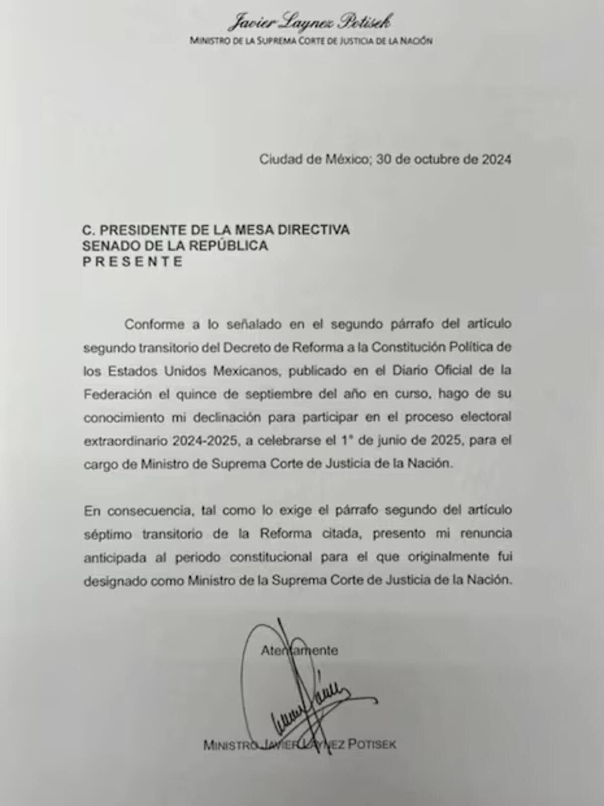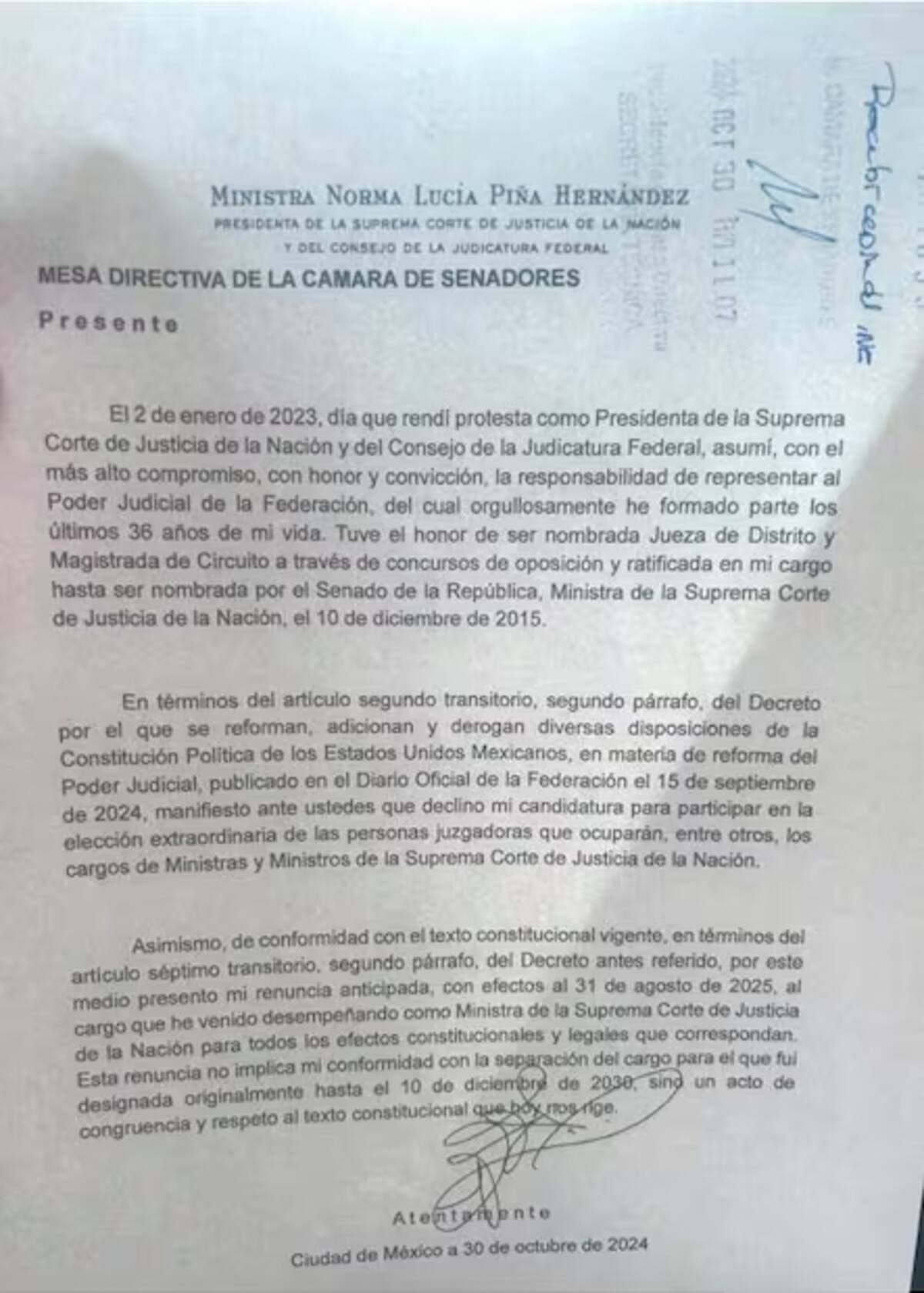 La renuncia de los ministros de la Suprema Corte cumple con la reciente reforma constitucional que exige su salida anticipada para permitir un nuevo proceso de elección popular.