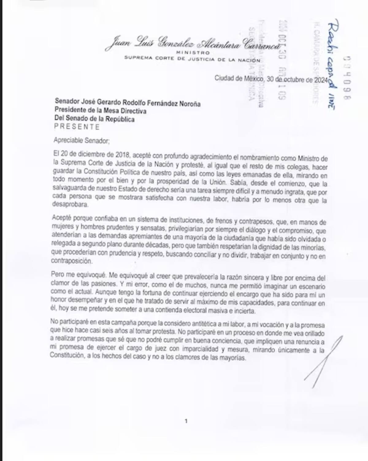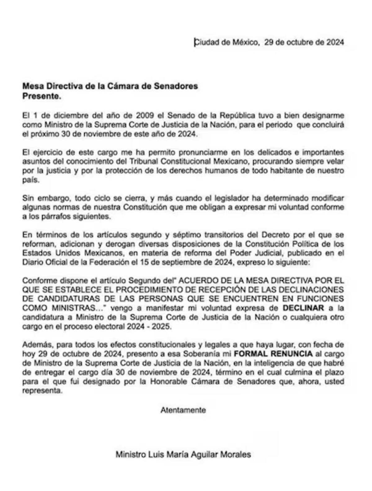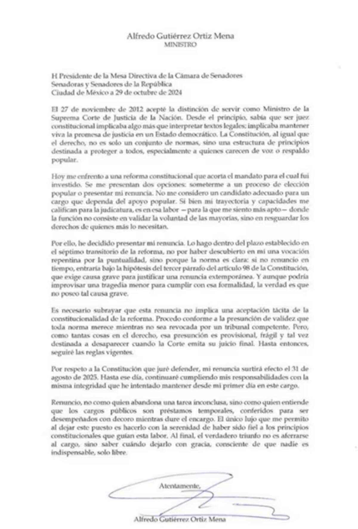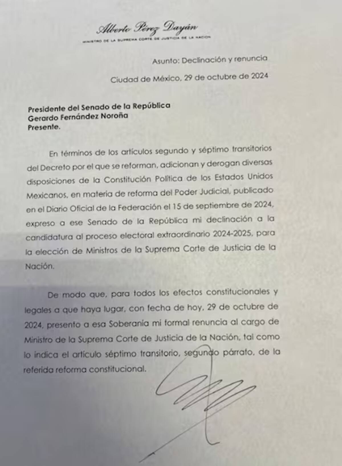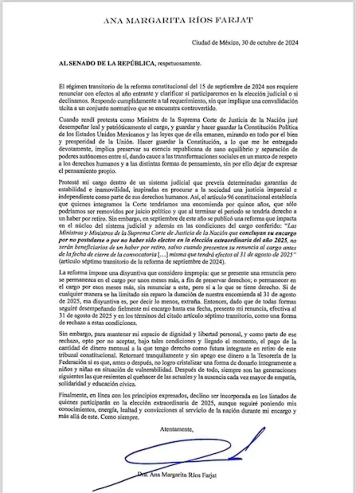 Para sellar su renuncia, los ministros dejaron ocho cartas donde cada uno exponía su motivo para dejar el cargo además de sus preocupaciones sobre la reforma y los cambios en el poder judicial.
