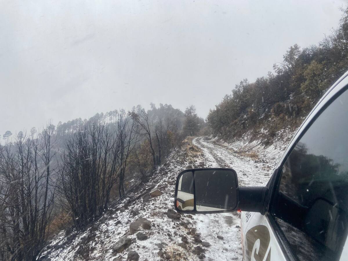 Esta tarde se reporta la caída de aguanieve en la zona afectada por el incendio forestal, en el municipio de Nácori Chico.