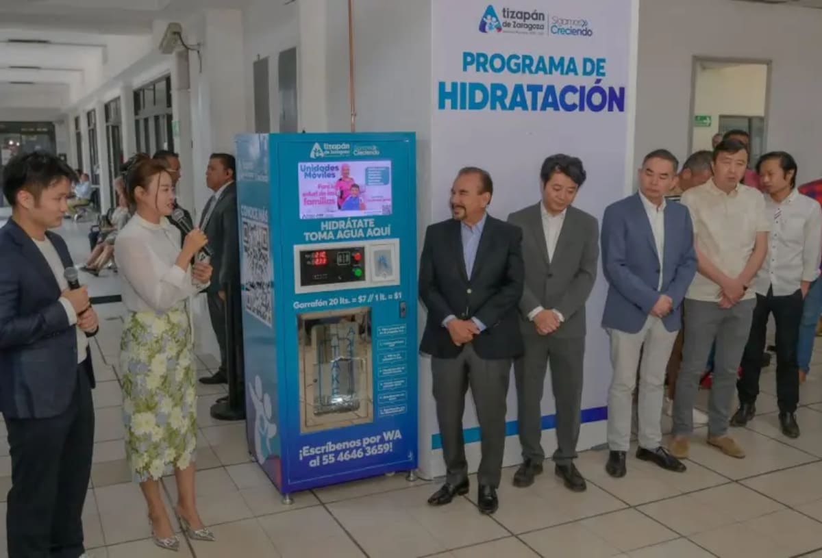 ATIZAPÁN, Estado de México.- — Con el lema “Hidrátate toma agua segura”, un millar de máquinas expendedoras de agua purificada de origen chino comenzaron a operar en edificios públicos y 20 escuelas de este municipio mexiquense, como parte de una estrategia conjunta entre autoridades locales y empresarios asiáticos para facilitar el acceso a agua potable de calidad.
