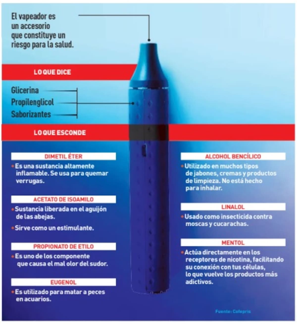 “Lo que no se dice de los cigarrillos electrónicos es que sí contienen tabaco, que sí generan adicción y que no es vapor lo que se inhala, sino micropartículas altamente dañinas para la salud”