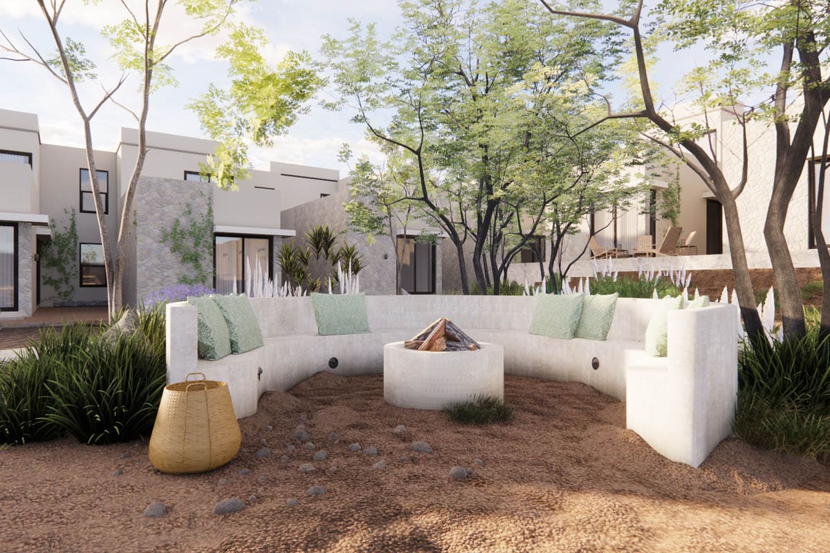 Este proyecto exclusivo reúne 44 residencias distribuidas alrededor del corazón central del conjunto, con un diseño que favorece la convivencia, la seguridad y la cercanía entre vecinos; las áreas comunes, que abarcan 3 mil 200 metros cuadrados, funcionan como la extensión natural del patio de cada hogar.