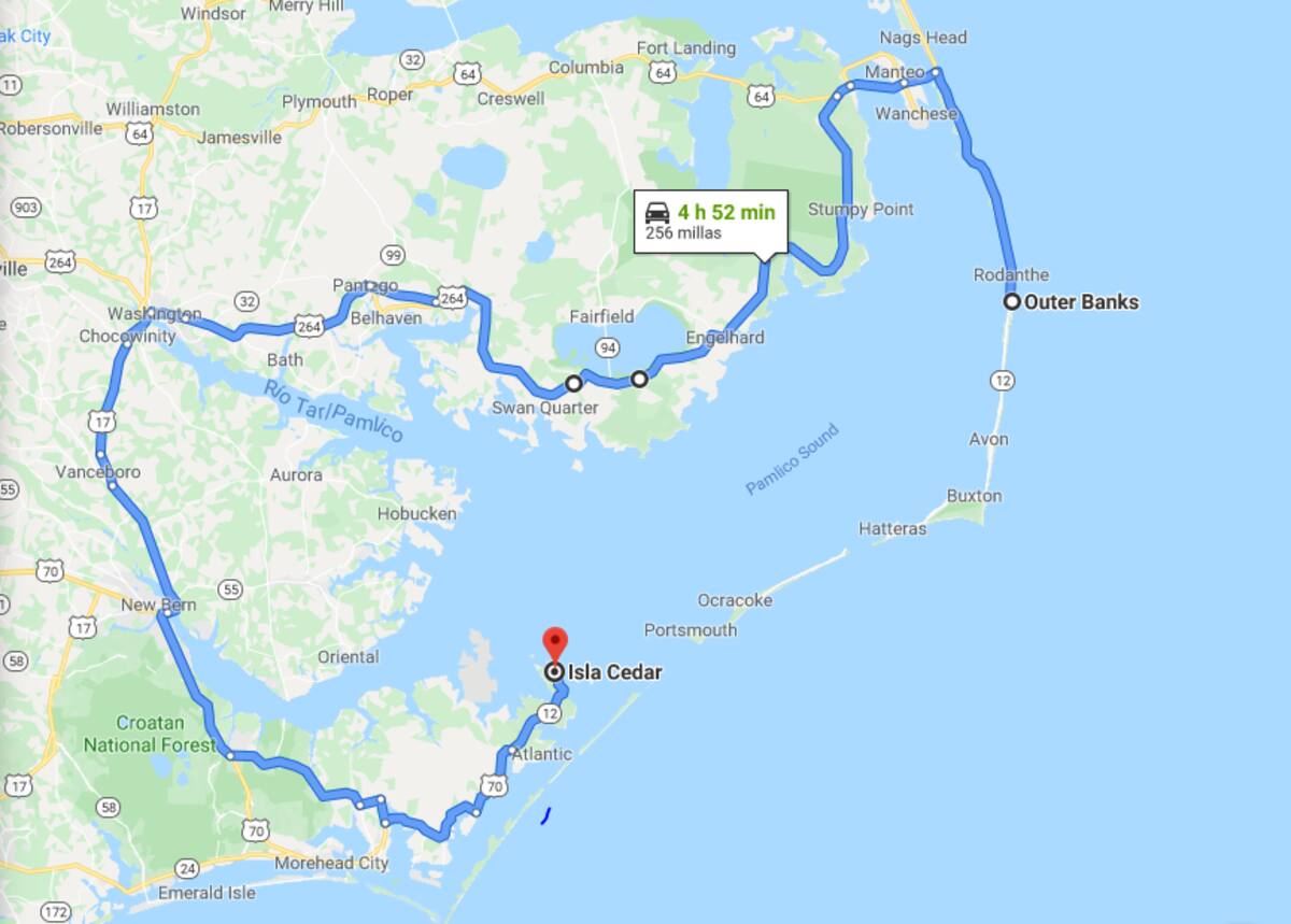 Después de dos meses, fueron ubicadas en Outer Banks, separada de Cedar Island por kilómetros de agua.