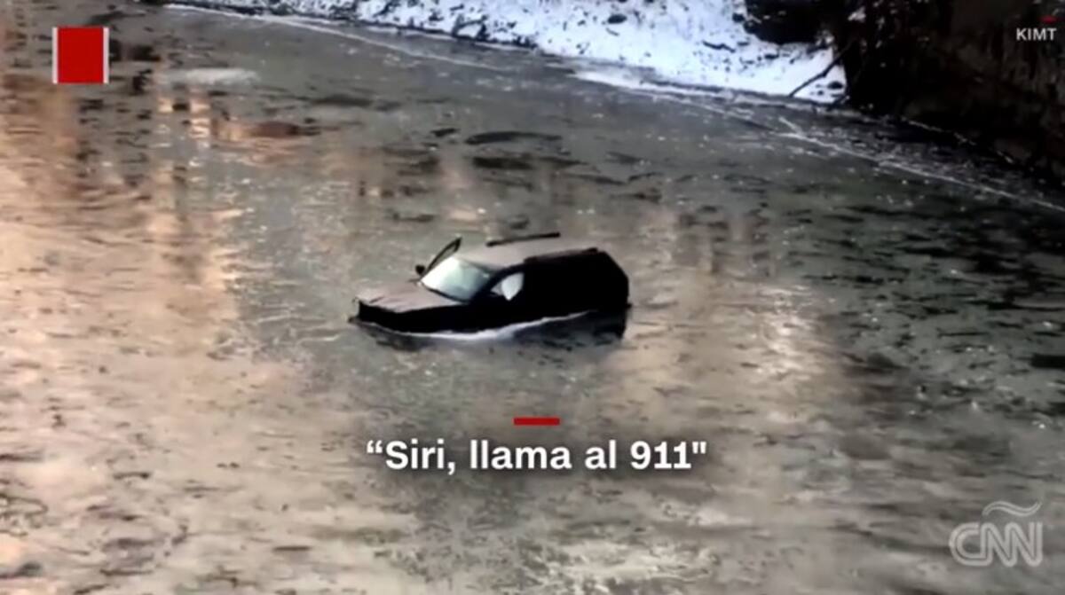 CHARLES CITY, Iowa.- Un joven conductor que se salió de la carretera y cayó a un río congelado, fue salvado gracias a la aplicación de Siri.