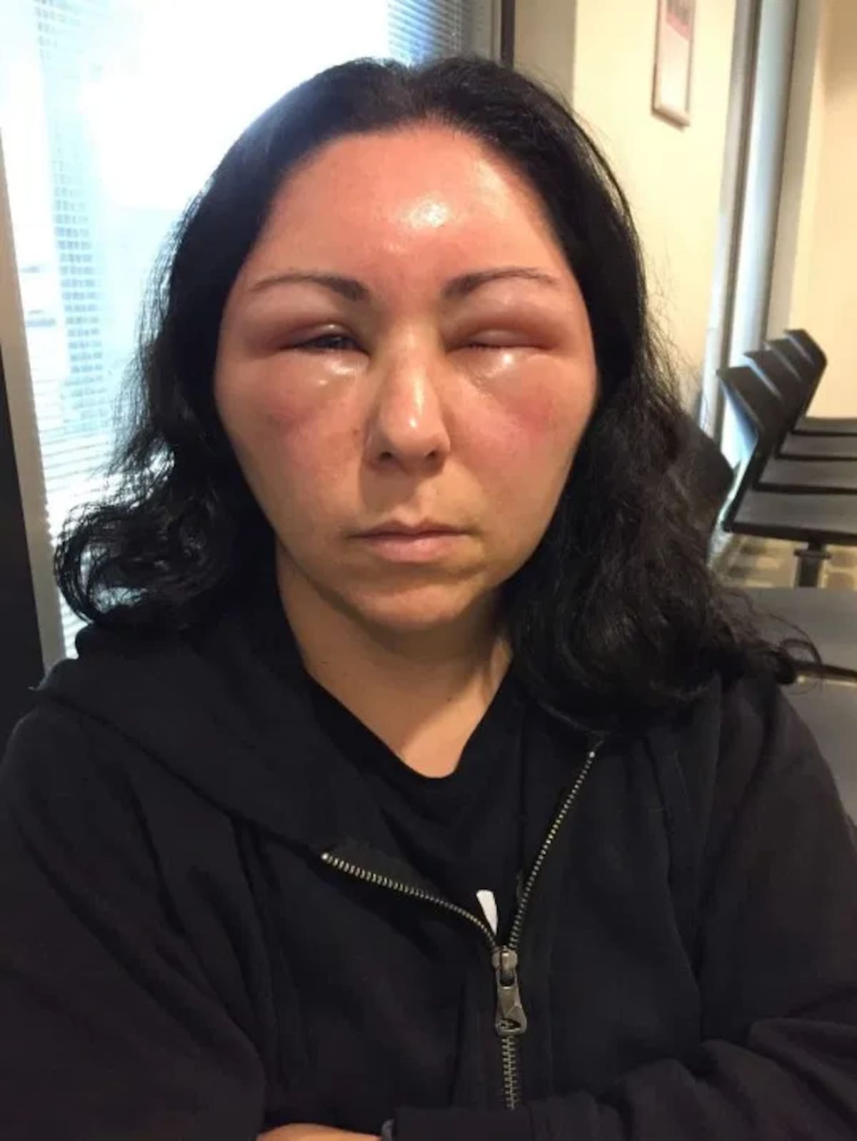 Desafortunadamente para la mujer, su cara se fue deformando cada vez más por la hinchazón, y pasado un día más, estaba tan inflamada que no podía abrir los ojos.