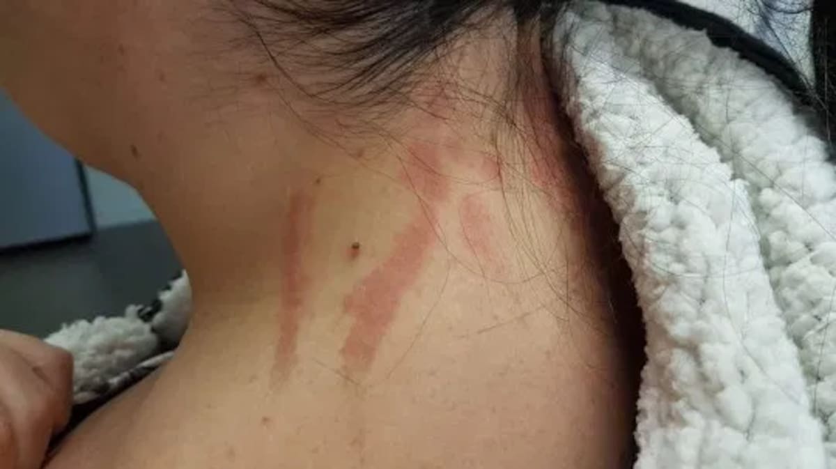 Sin embargo, al día siguiente en su trabajo comenzó a sentir que le picaba el cuello, por lo que le pidió a un compañero que la checara, y descubrió que tenía algunas quemaduras en la piel.